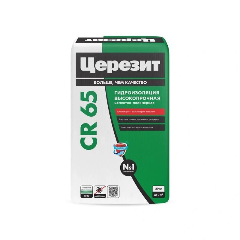 Гидроизоляционная смесь CR 65 WATERPROOF Церезит предназначена для устройства водонепроницаемых покрытий на недеформирующихся незасоленных минеральных не содержащих гипс основаниях на полах и стенах внутри и снаружи зданий.