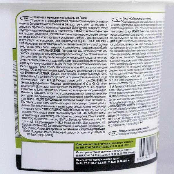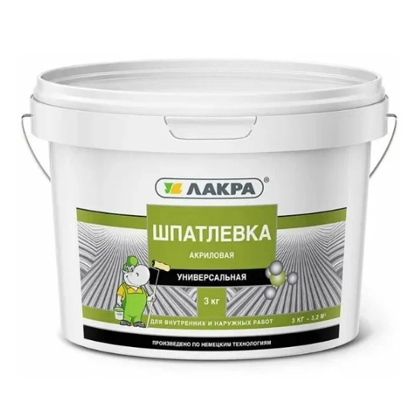 0008034 Шпатлевка акриловая универсальная Лакра для внутренних и наружных работ 3кг Россия