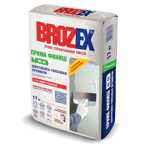 Шпатлевка гипсовая премиум Брозекс WR 80 ПРИМА Финиш,17 кг