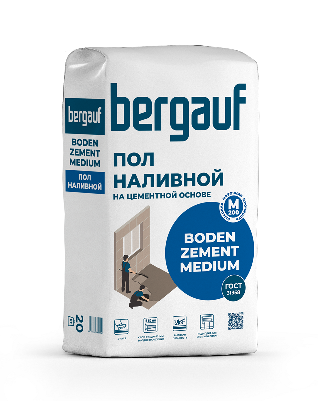 Пол наливной Boden Zement Medium 5-60мм 20кг Bergauf *1/56