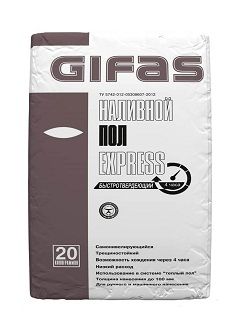 Наливной пол гипсовый Gifas Express сухая смесь на основе комплексного вяжущего с минеральными наполнителями и модифицирующими добавками. Применяется для выравнивания цементных и несущих оснований пола и изготовления высококачественной самонивелирующейся стяжки внутри жилых и общественных зданий. Образует прочное и ровное основание под последующую укладку паркета, линолеума, текстильных ковров, керамической плитки и других материалов. Идеально подходит для устройства обогреваемых полов.